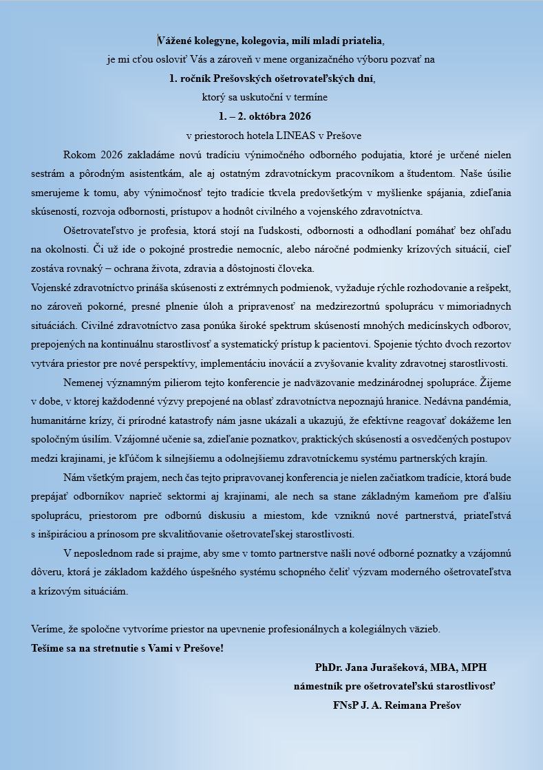 1. ROČNÍK PREŠOVSKÝCH OŠETROVATEĽSKÝCH DNÍ 2026